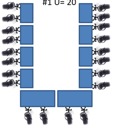 - Classroom – U-Shape – inside & outside seating: 40 seats